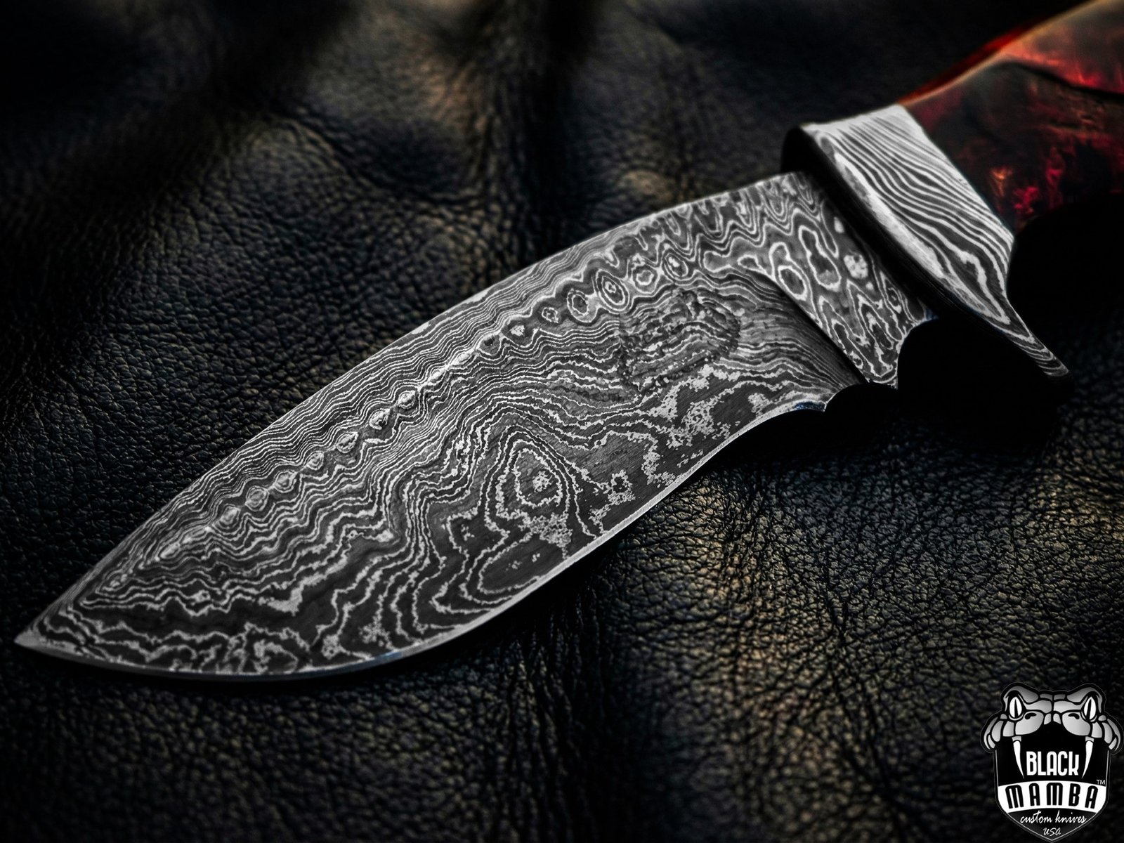 - Blade: This knife features an impressive 352-layer composition of 1095 and 15N20 steel, expertly oil tempered to achieve a hardness of 58-60 HRC.