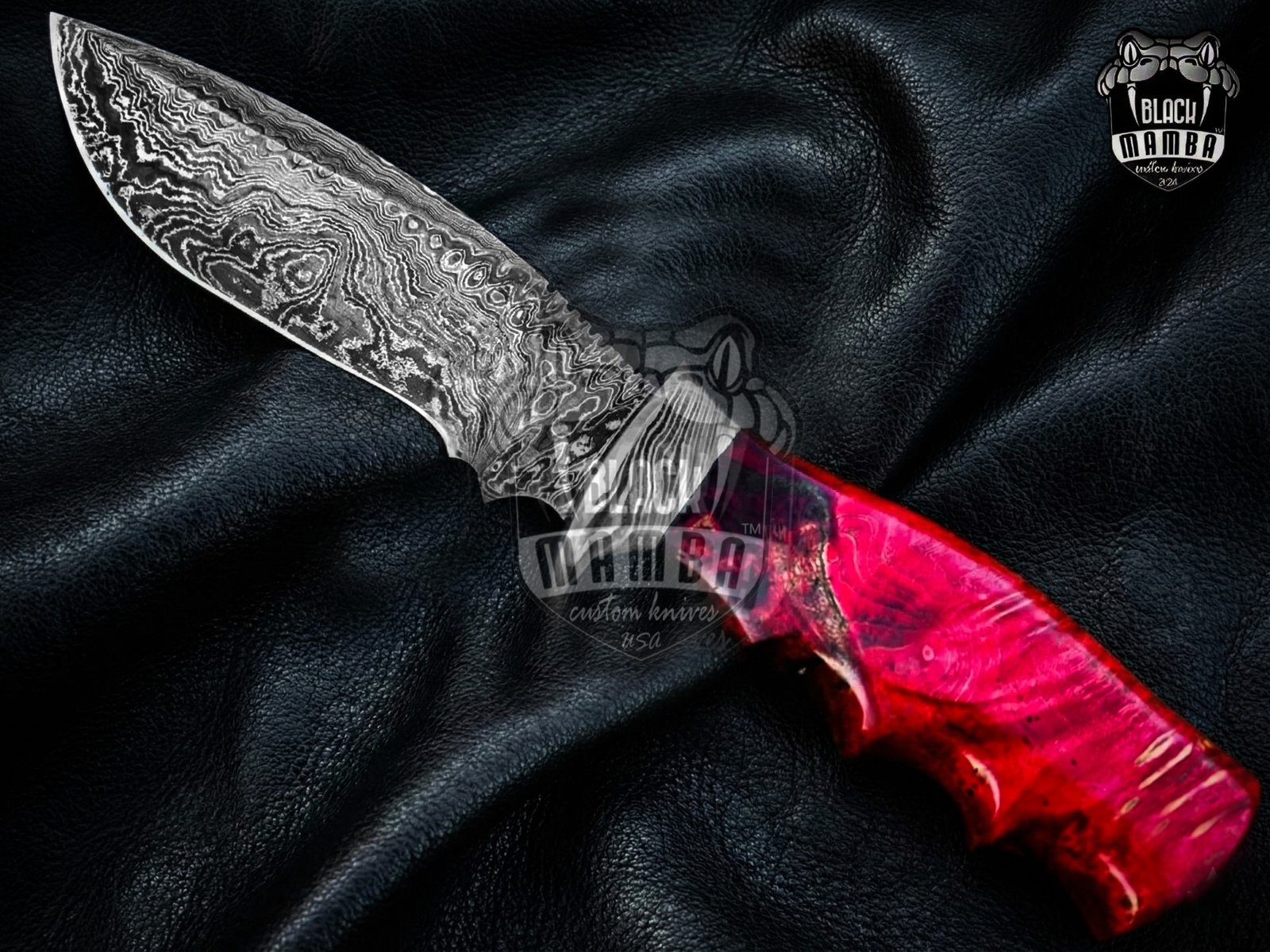 BMK-1004-LQ Redback 12″ Long 7″Blade ” 12oz Damascus steel Hunting Bowie Handmade Knife with stabilized wood Black mamba Hand Made Word Class knives LIMITED LUXURY EDITION