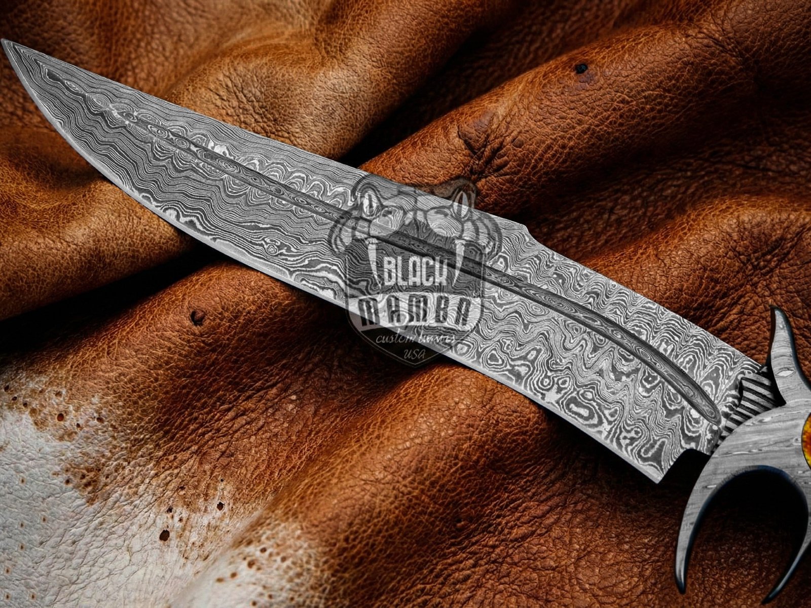 BMK-1005-LQ RED DRAGON SLAYER Knife 16″ Long 11″Blade ” 16oz Damascus Fixed Blade Hunting knife Damascus Steel Bowie Knife Black mamba Hand Made World Class knives USA Made