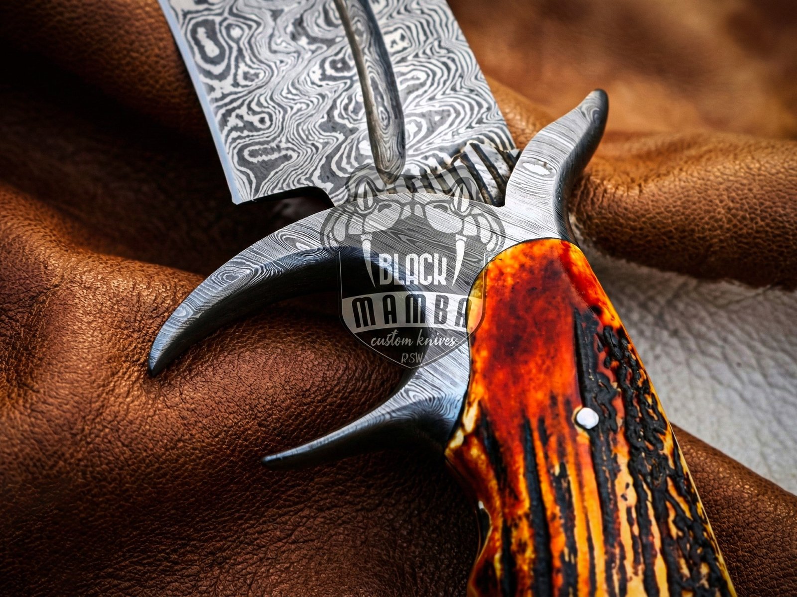 HANDLE MATERIALS: Burned Stag Antler handle