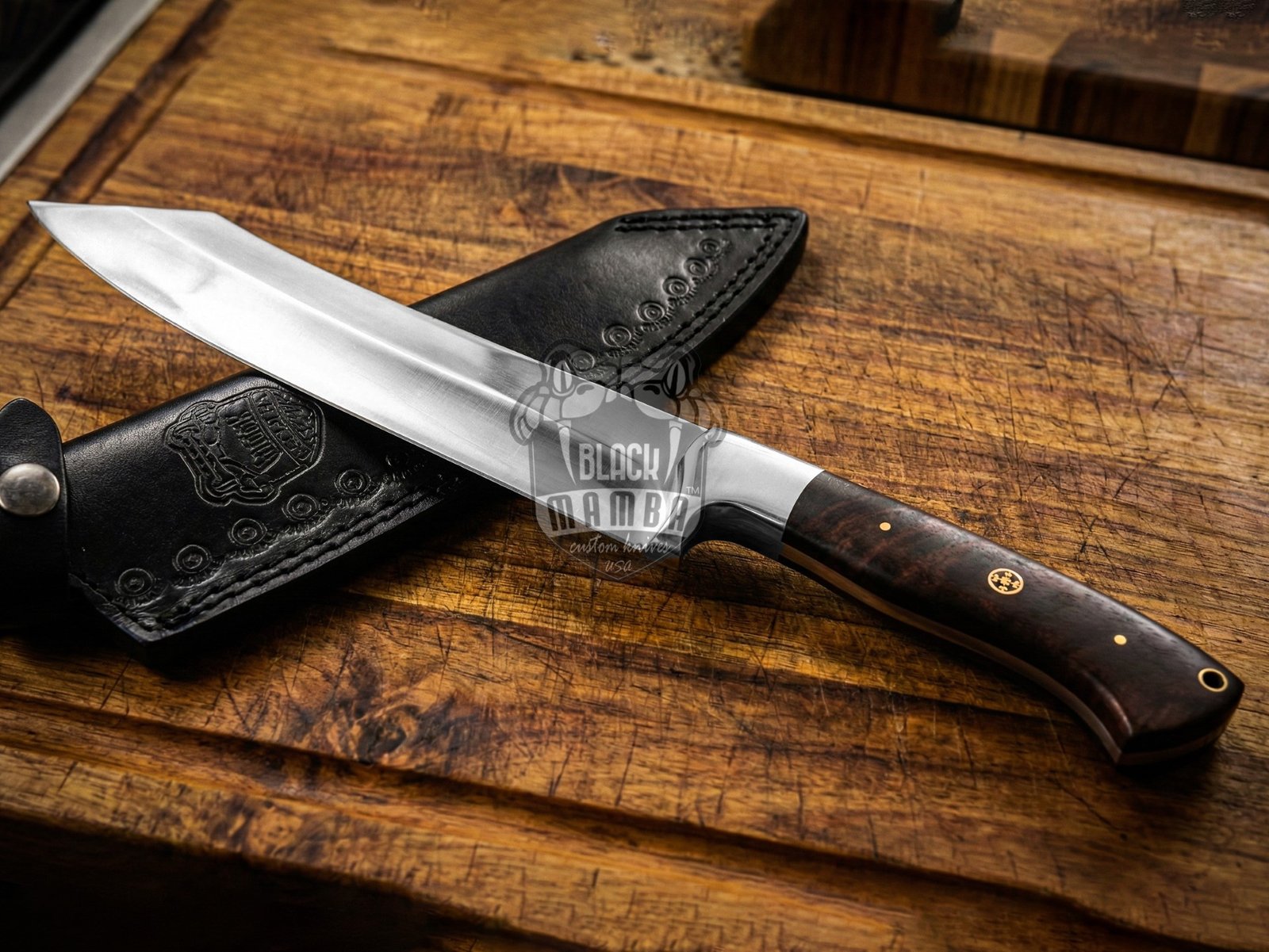 BMK-152-440c Yukio Chef Knife 13 Inches Long 7.5 Inches Blade 11 Ounce Razor Sharp Hand Made 440c Chef Knives Black Mamba Hand Made World Class Knives