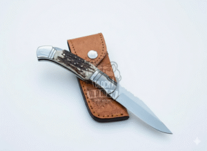 BMK-653 Handmade 440C Steel Pocket Knife with Stage Handle and Leather Sheath | Perfect for Hunting,Camping & Fishing