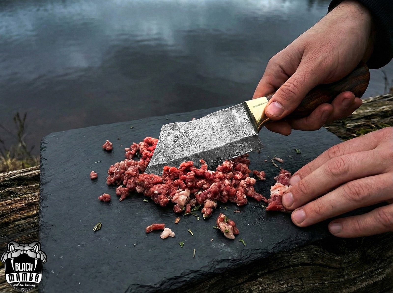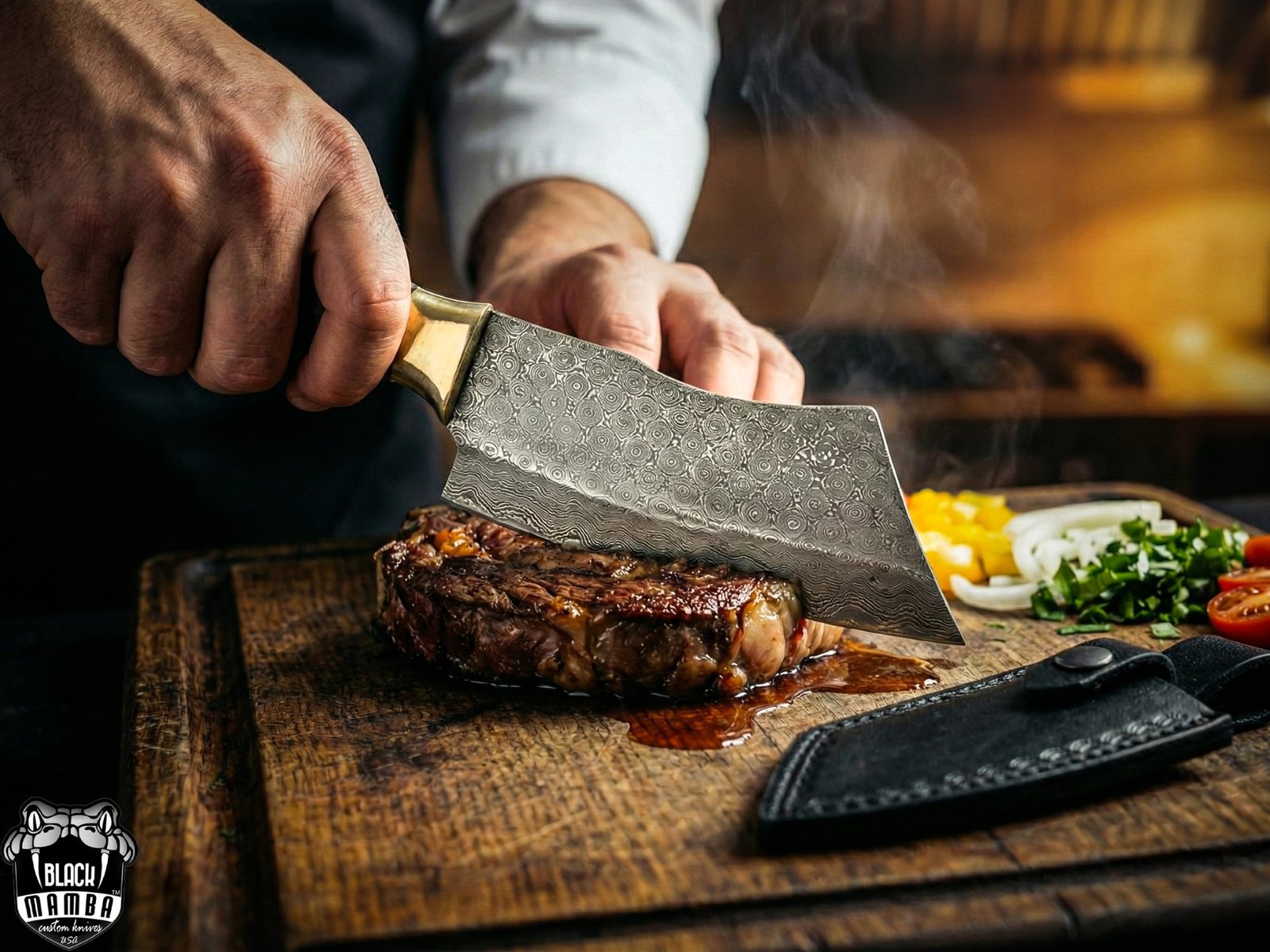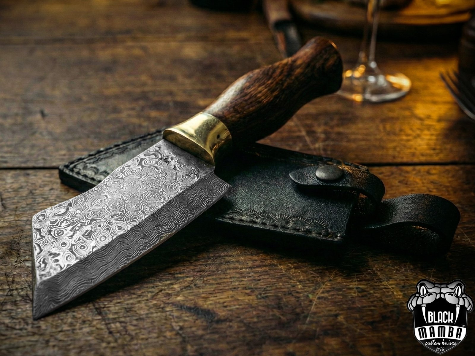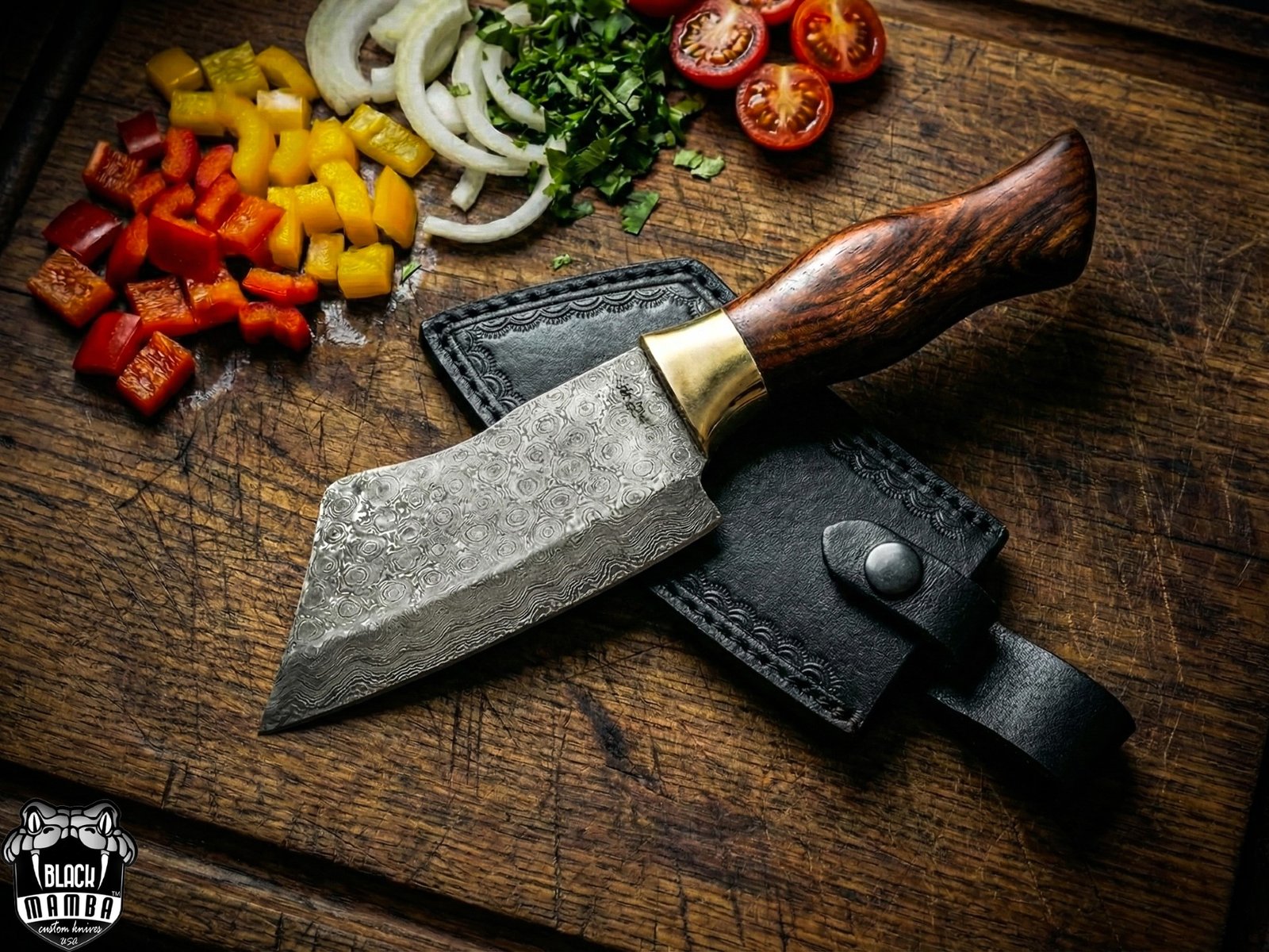 BLACK MAMBA KNIVES Bmk-706 Bao Bao Damascus Cleaver Knife 10 Inches Long 5 Inches Blade 14 Ounce Damascus Chef Cleaver Blade Knife Hand Made Word Class