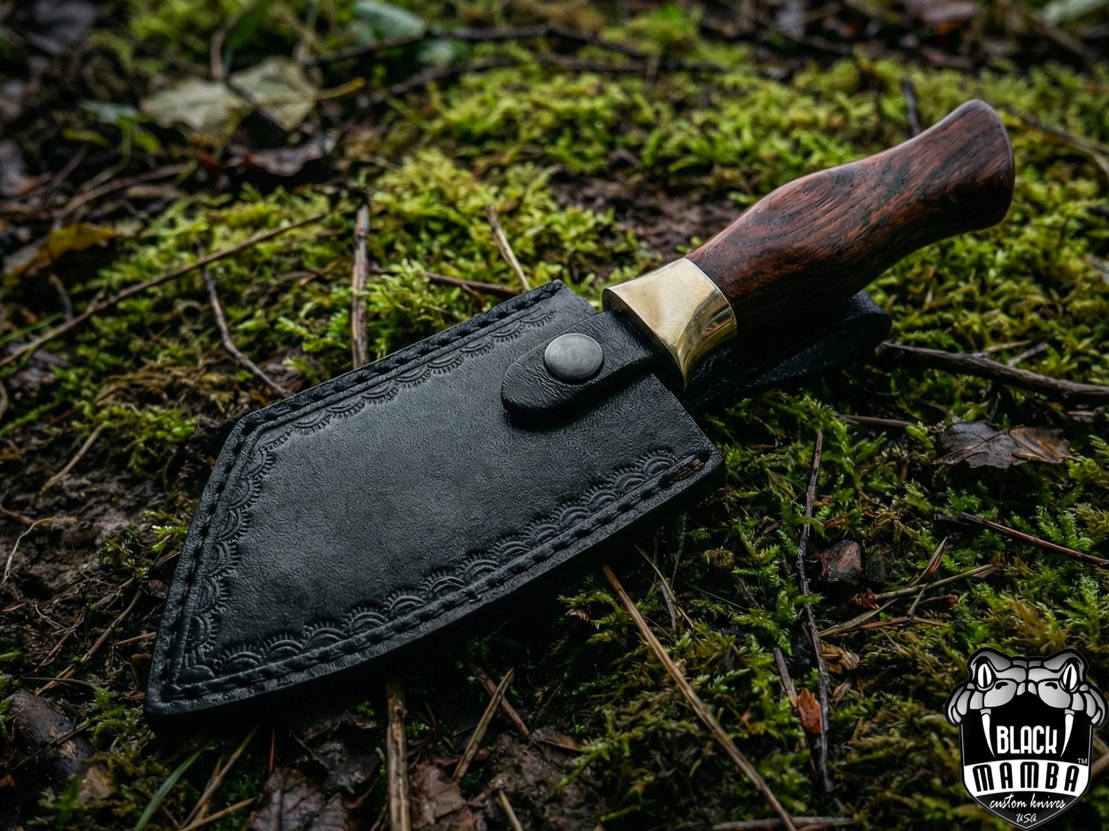 - ☆ 100% Cow Leather Sheath: The accompanying sheath is meticulously crafted from prime quality thick cow skin, ensuring top-notch manufacturing standards. The durability is further enhanced by strong double stitching with thick threads, complemented by an elegant, rust-resistant brass button. This high-standard leather sheath provides a safe and secure home for your precious knife.