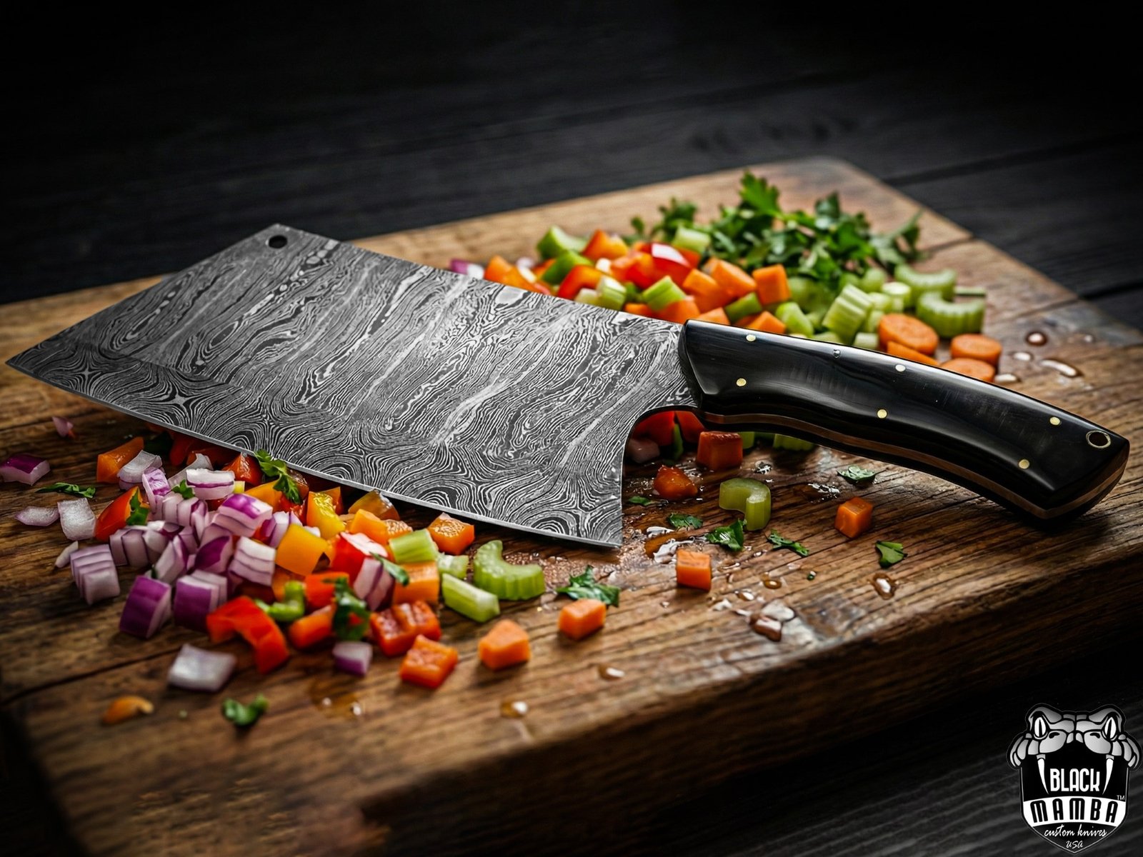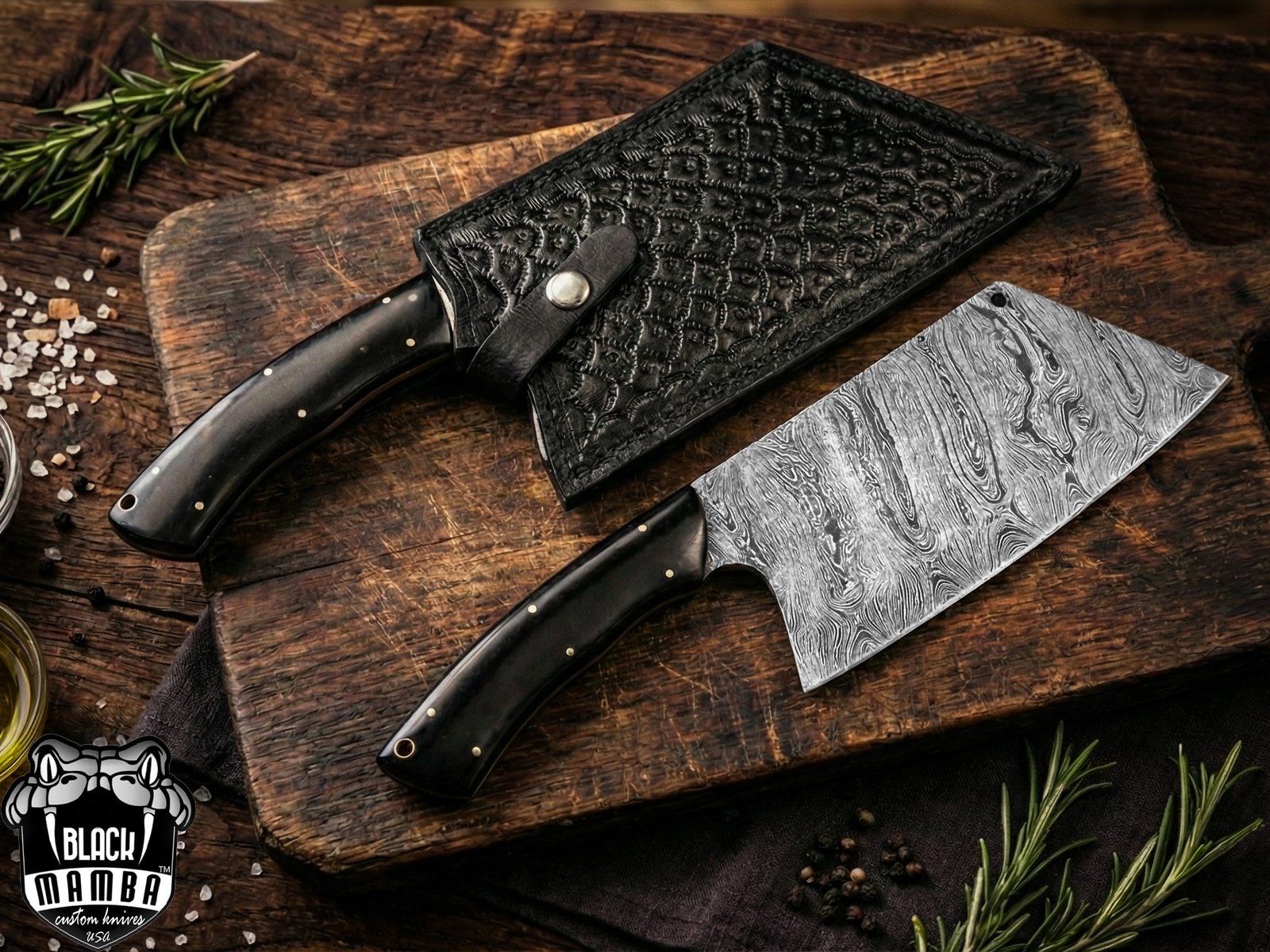 Black Mamba Knives Bmk-708-DS Black Panther Damascus Chef Cleaver Blade Knife World Class Knives