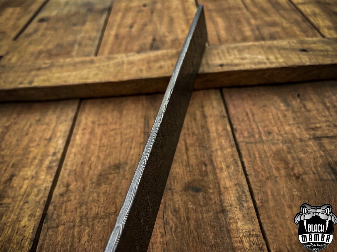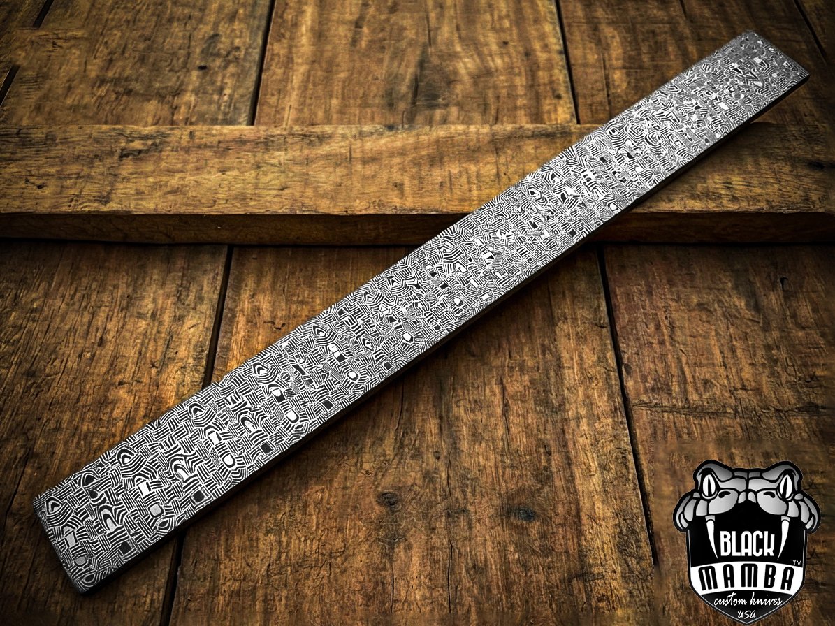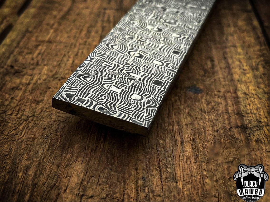 Damascus Mosiac-2 pattern Billet bar 5 mm thick 12 inches long 1.5 inches wide Black Mamba billets