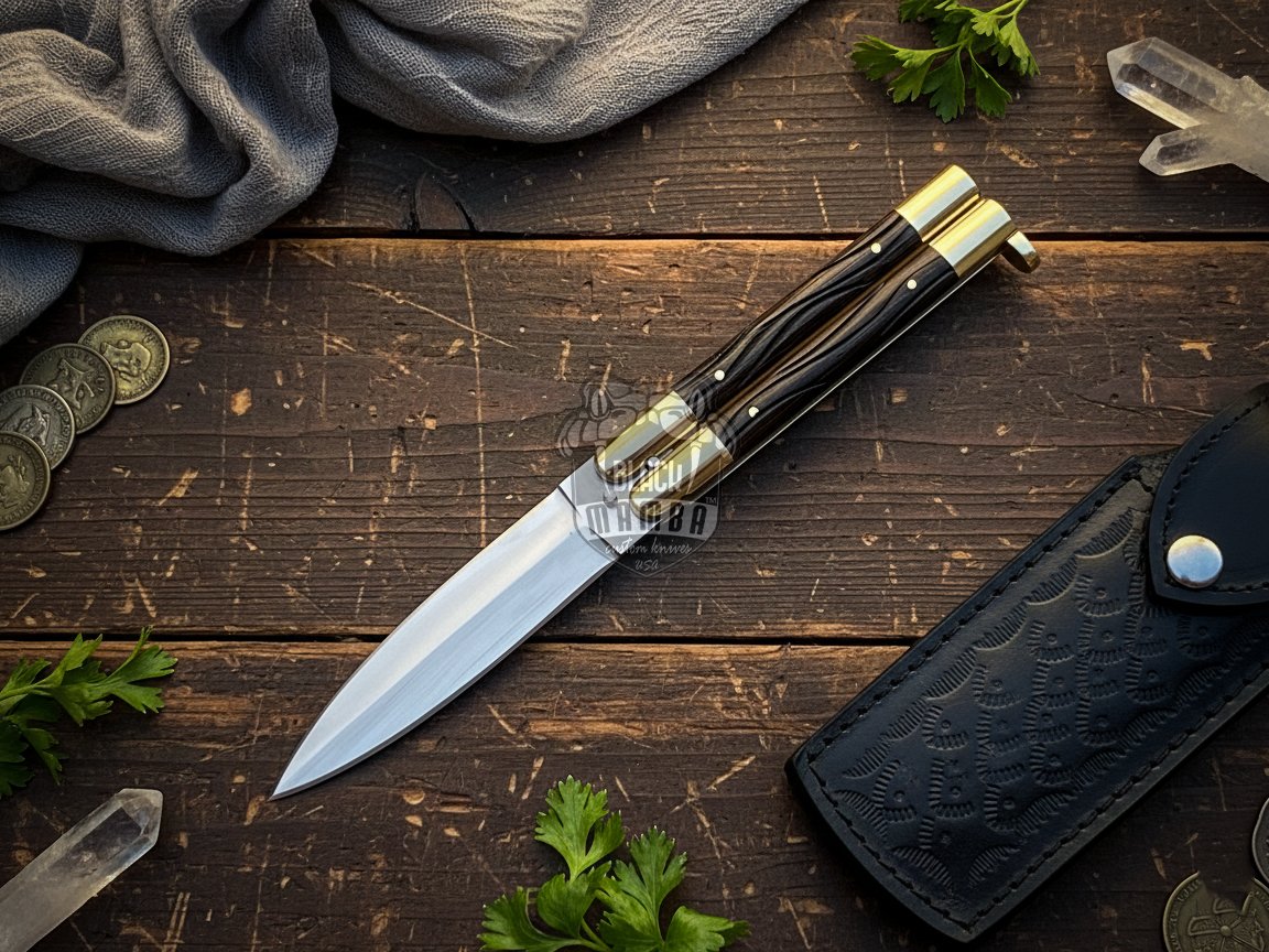 BMK-727 Handmade D2 Steel Balisong Knife | Kamagong Wood & Brass Handle | Premium Butterfly Knife with Leather Sheath | Personalized Gift for Him & Her