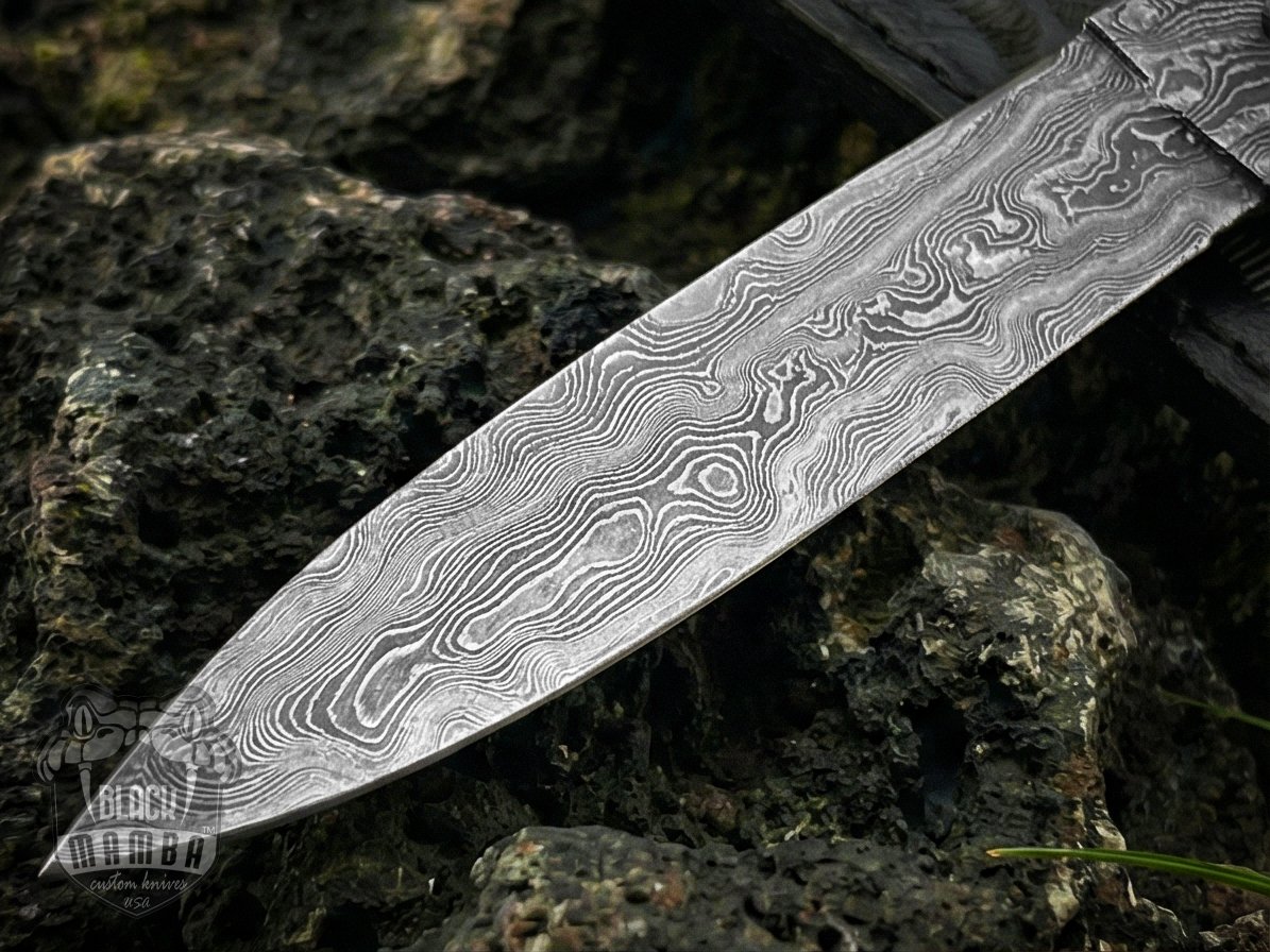 Blade Material: Hand-forged Damascus Steel Double Edge Blade for superior sharpness, strength, and long-lasting edge retention