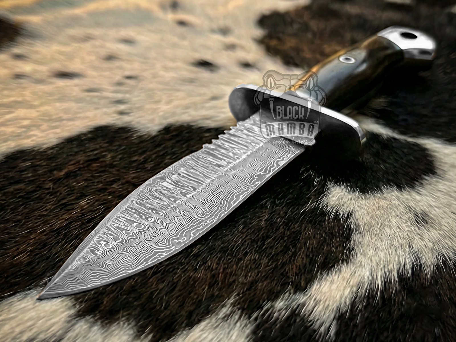 The handle features a stunning natural buffalo horn grip paired with a solid steel bolster, offering a perfect balance of strength, comfort, and luxury appeal. Each knife is handcrafted, making every piece truly one-of-a-kind a functional work of art built for the wild and worthy of any collection.