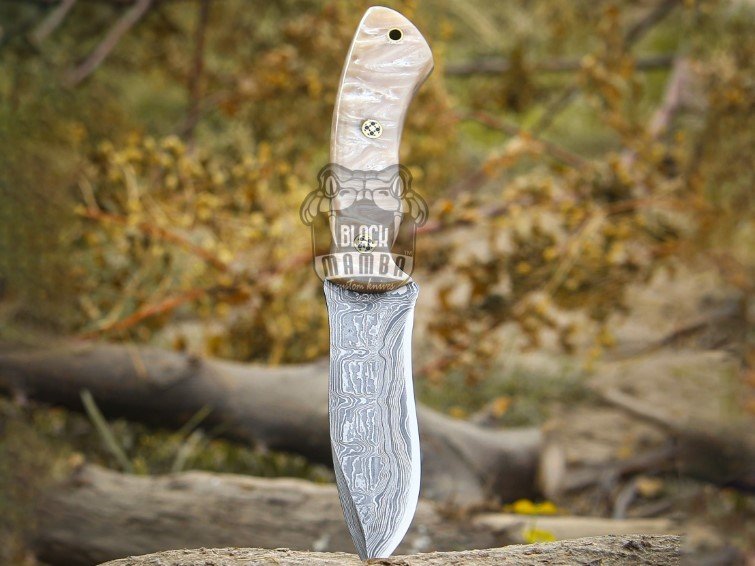 BMK-699 Black Mamba Ghost Scout Handmade Damascus Steel Skinner Knife with | Pearl Shell Handle | and Musaic Pins | Custom Gift for Him | Hunting Camping