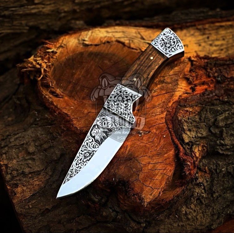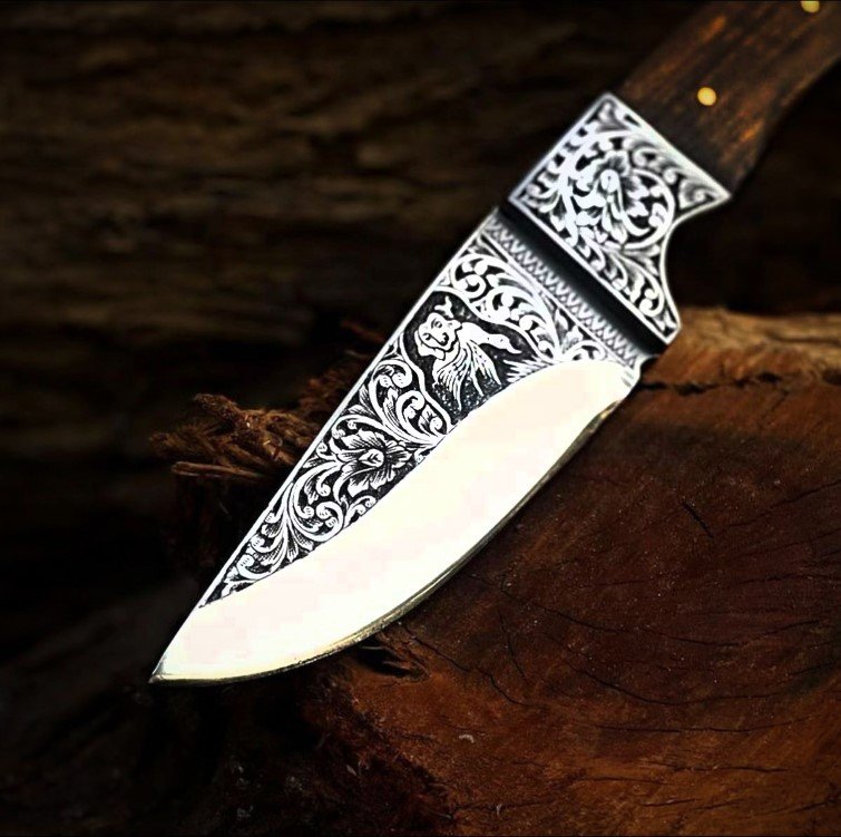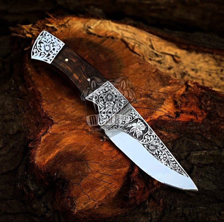 The high-carbon stainless steel blade offers excellent sharpness and rust resistance, while the engraved bolster adds a touch of luxury. The natural Rosewood handle provides superior grip, smooth finishing, and long-lasting durability. Whether used for camping, EDC, or displayed as a collectible, this handcrafted knife delivers performance and style in every detail.